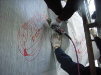 補修が完了すると、次の工程では防水テープを貼ります。