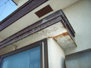 軒天が剥がれ、しみが
